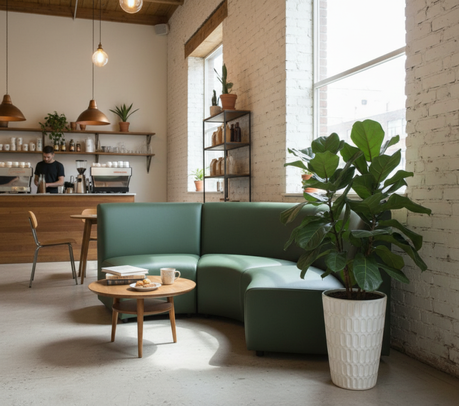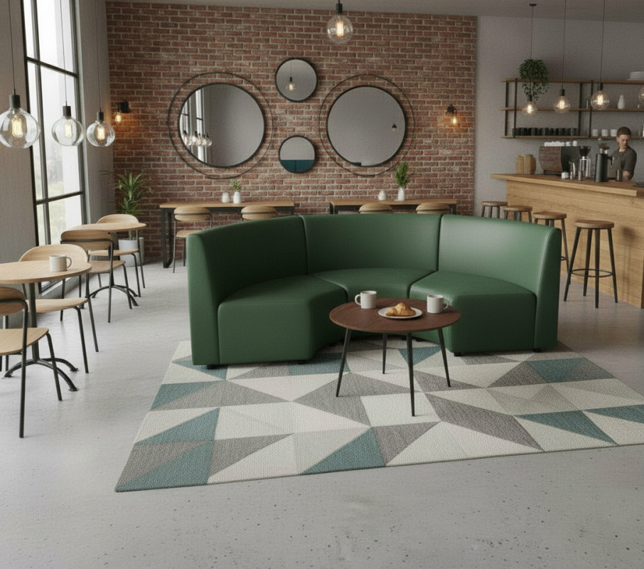 Радиусный диван для кафе и ресторана. Надежный металлокаркас с высоким уровнем ресурса прочности, устойчивый за счет конструктива каркаса и использования самых лучших материалов. Выполнен из высококачественной Эко кожи.