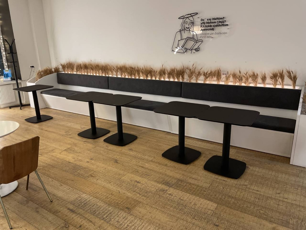 Квадратные, круглые, прямоугольные столешницы. HPL - основа фанера. Поверхность Clean Touch обладает влагостойкостью, устойчивостью к царапинам. Приятная на ощупь, бархатистая поверхность. Фанера - это многослойный материал, изготавливаемый путём склеивания специально подготовленного шпона.